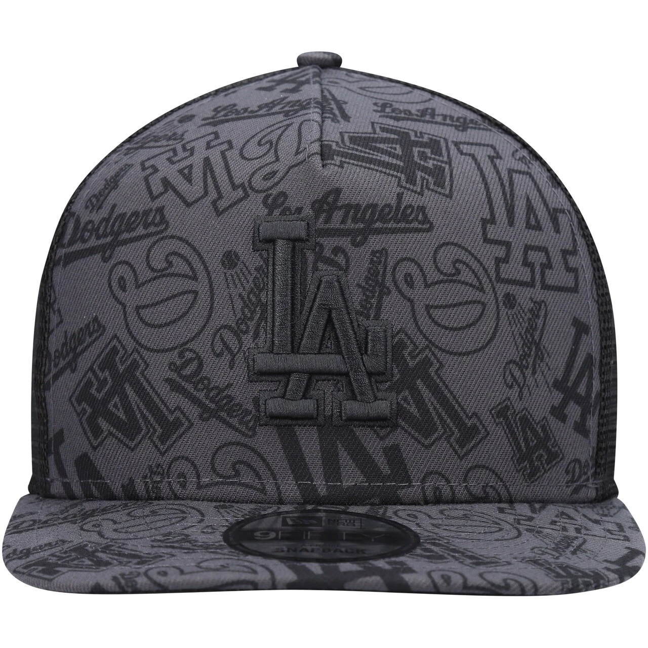 Men’s Los Angeles Dodgers New Era Black Repeat A-Frame 9FIFTY Trucker Snapback Hat