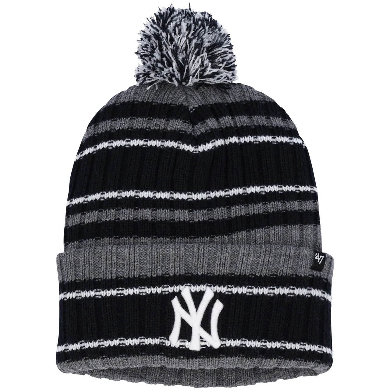 Keep your noggin warm and enjoy a boost of New York Yankees spirit each time you reach for this bold Rexford cuffed knit hat from ’47. It features an embroidered New York Yankees graphic on the cuff and a striped design that offers an understated look fit for game day. Plus, the fun pom on top provides a jovial spin on your showing of team pride.