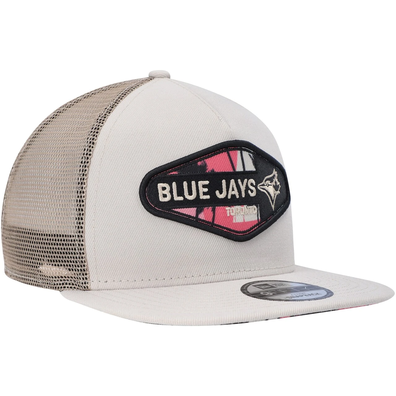 Men’s Toronto Blue Jays New Era Natural Retro Beachin’ Patch A-Frame Trucker 9FIFTY Snapback Hat